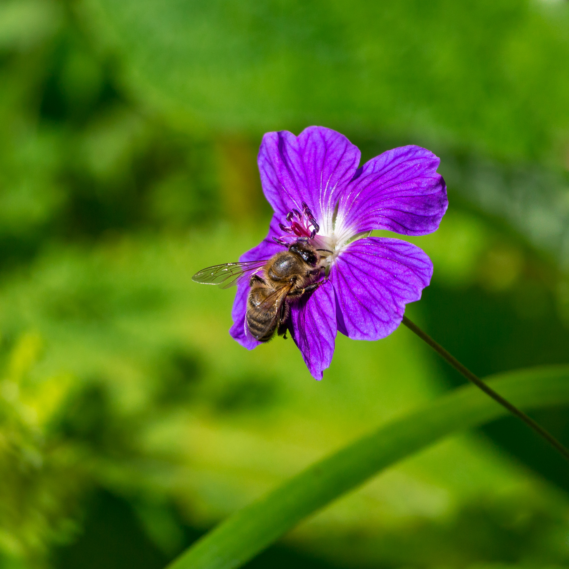 I spent quite a while getting used to taking photos at such a close range. I found the bees quite tricky to catch, as they are so small and fast it can be difficult to focus on them properly. On top of that, I also struggled to get a fast enough shutter speed to freeze their wings while keeping a high enough aperture to keep all of the bee’s body in focus. I found that even at f/5.6 sections of the bee would be out of focus. Going up to f/8 helped with this, although this then lowered the shutter speed a bit.