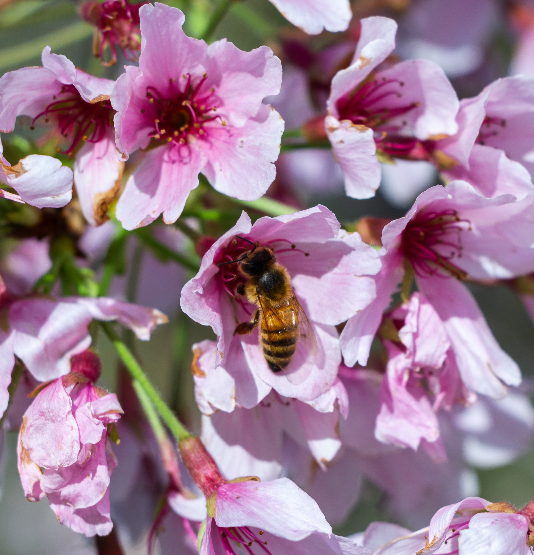 I probably could have pushed the ISO here to get a faster shutter which would have meant I had to rely less on the bees staying still for a good frame. That would have given me more usable frames overall, and might have let me get some shots of them in mid-flight. Not sure if my camera’s focus tracking would have allowed for that though :D
